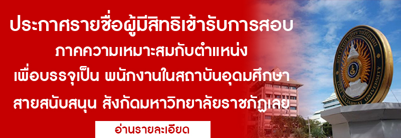 ประกาศรายชื่อผู้มีสิทธิเข้ารับการสอบภาคความเหมาะสมกับตำแหน่งเพื่อบรรจุเป็น พนักงานในสถาบันอุดมศึกษา สายสนับสนุน สังกัดมหาวิทยาลัยราชภัฏเลย