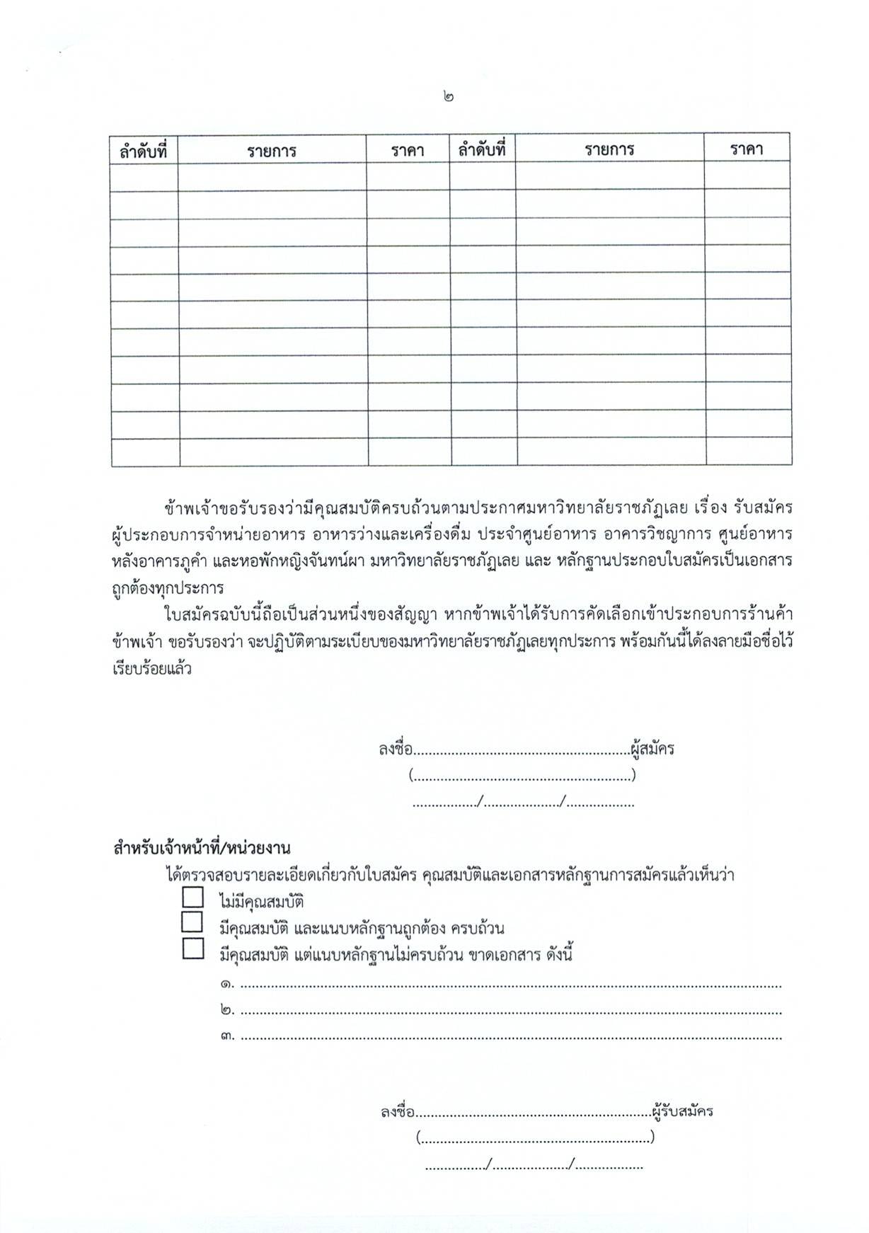 ม.ราชภัฏเลย รับสมัครผู้ประกอบการจำหน่ายอาหาร อาหารว่างและเครื่องดื่ม ภายในมหาวิทยาลัยราชภัฏเลย