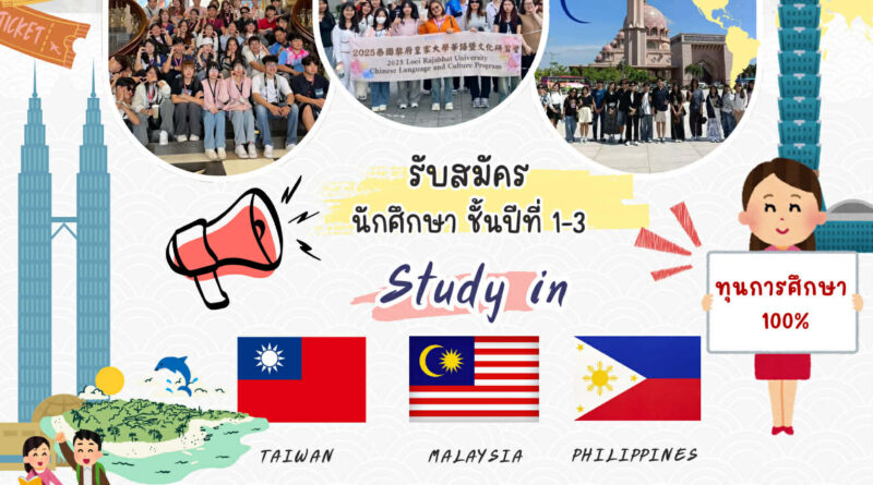 มหาวิทยาลัยราชภัฏเลย เปิดรับสมัครนักศึกษาเพื่อขอรับทุนไปต่างประเทศ ประจำปีงบประมาณ พ.ศ. 2569 โดยมีวัตถุประสงค์เพื่อให้นักศึกษาได้พัฒนาความสามารถด้านภาษาและเรียนรู้วัฒนธรรมต่างประเทศ ณ สหพันธรัฐมาเลเซีย สาธารณรัฐฟิลิปปินส์ และสาธารณรัฐจีน (ไต้หวัน) ช่วงระหว่างเดือนเมษายน – มิถุนายน พ.ศ. 2569 ดังรายละเอียดต่อไปนี้