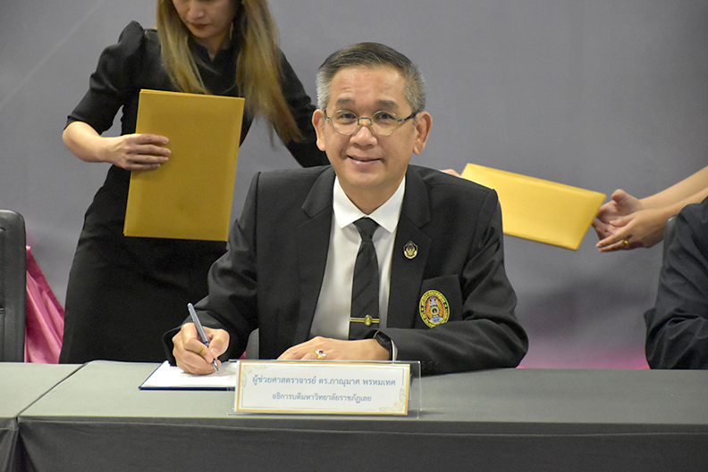 ผู้ช่วยศาสตราจารย์ ดร.ภาณุมาศ พรหมเทศ อธิการบดีมหาวิทยาลัยราชภัฏเลย ตัวแทนมหาวิทยาลัยราชภัฏเลย ลงนามความร่วมมือทางวิชาการกับหอการค้าจังหวัดเลย