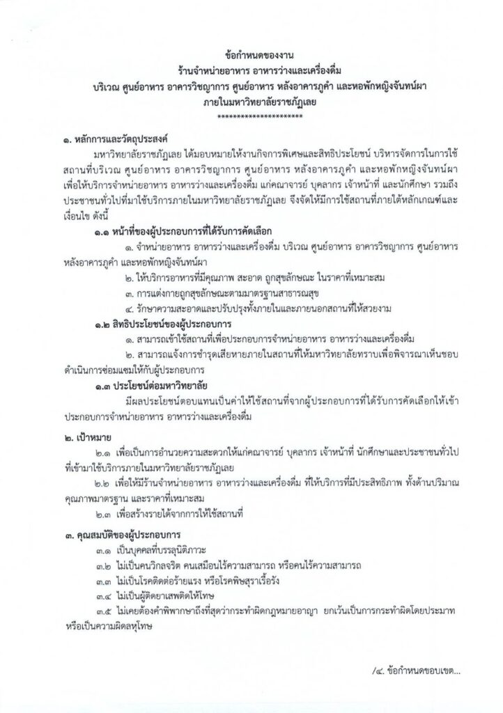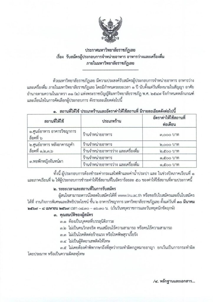 ม.ราชภัฏเลย รับสมัครผู้ประกอบการจำหน่ายอาหาร อาหารว่างและเครื่องดื่ม ภายในมหาวิทยาลัยราชภัฏเลย