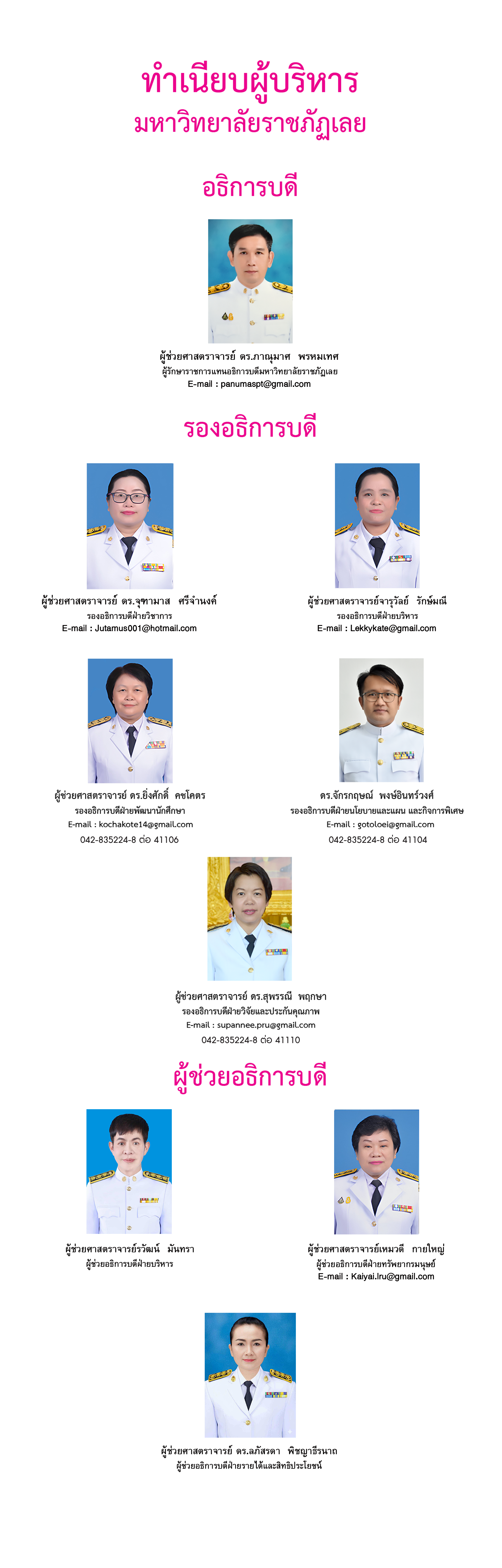 อธิการบดี รองอธิการบดี ผู้ช่วยอธิการบดี